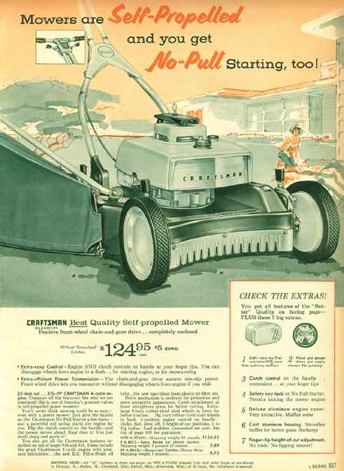 Catalog advertisement, Craftsman self-propelled mower, 1961.