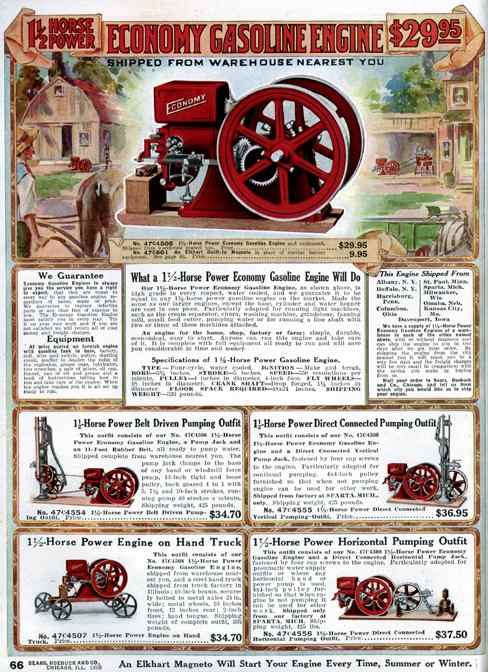 Caption: Special Catalog of Farm Implements catalog advertisement, Economy 1-1/2-horsepower gasoline engine, 1914.