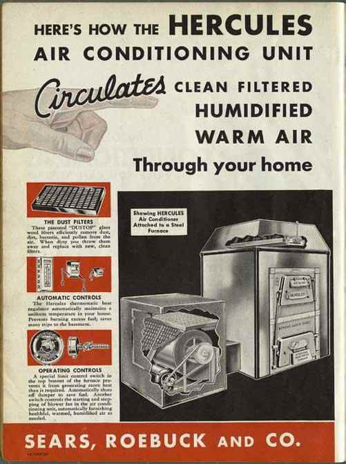 Caption: Modern Plumbing and Heating Equipment catalog advertisement, Hercules air-conditioning unit, 1934.