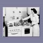 Kenmore gas and electric ranges are reintroduced after production stopped during World War II. Features include a pre-heat switch, Ken-timer and Visi-bake glass window oven door.