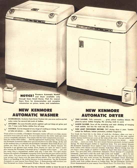 Caption: Catalog advertisement, Kenmore automatic washer and dryer, 1949.