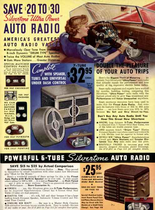 Catalog advertisement, Silvertone automobile radios, 1937.