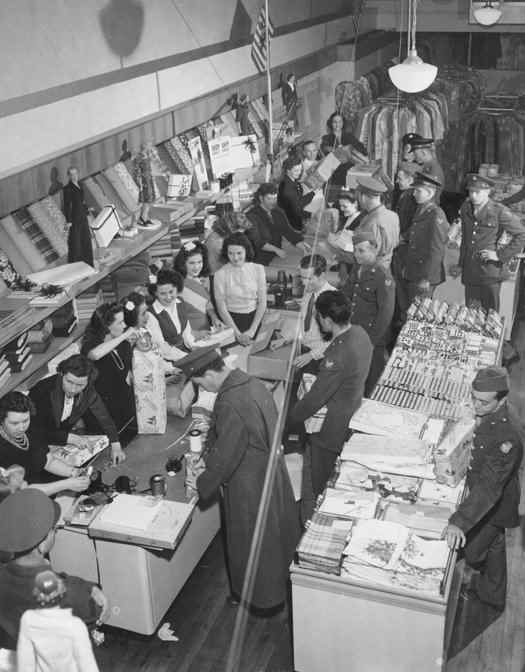 Caption: "Service Men's Gift Night" party, hosted by Southwestern Zone Sears stores, Waco, Texas, 1943.