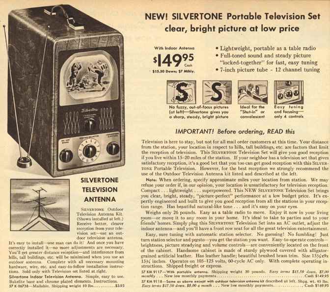 Catalog advertisement, Silvertone portable television, 1949.
