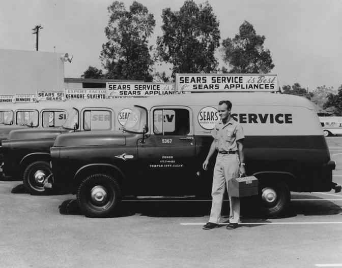 Caption: Sears service repairman, Central Service, Temple City, Calif., ca. 1958.